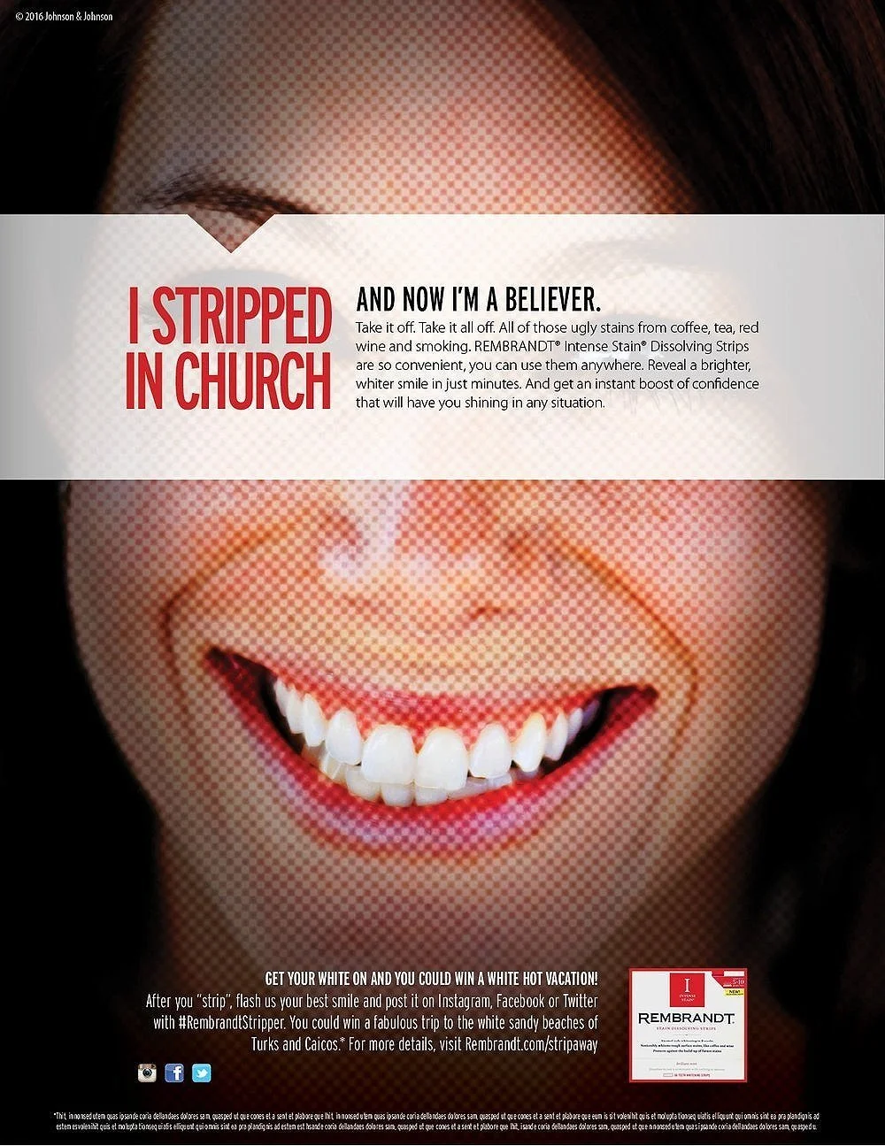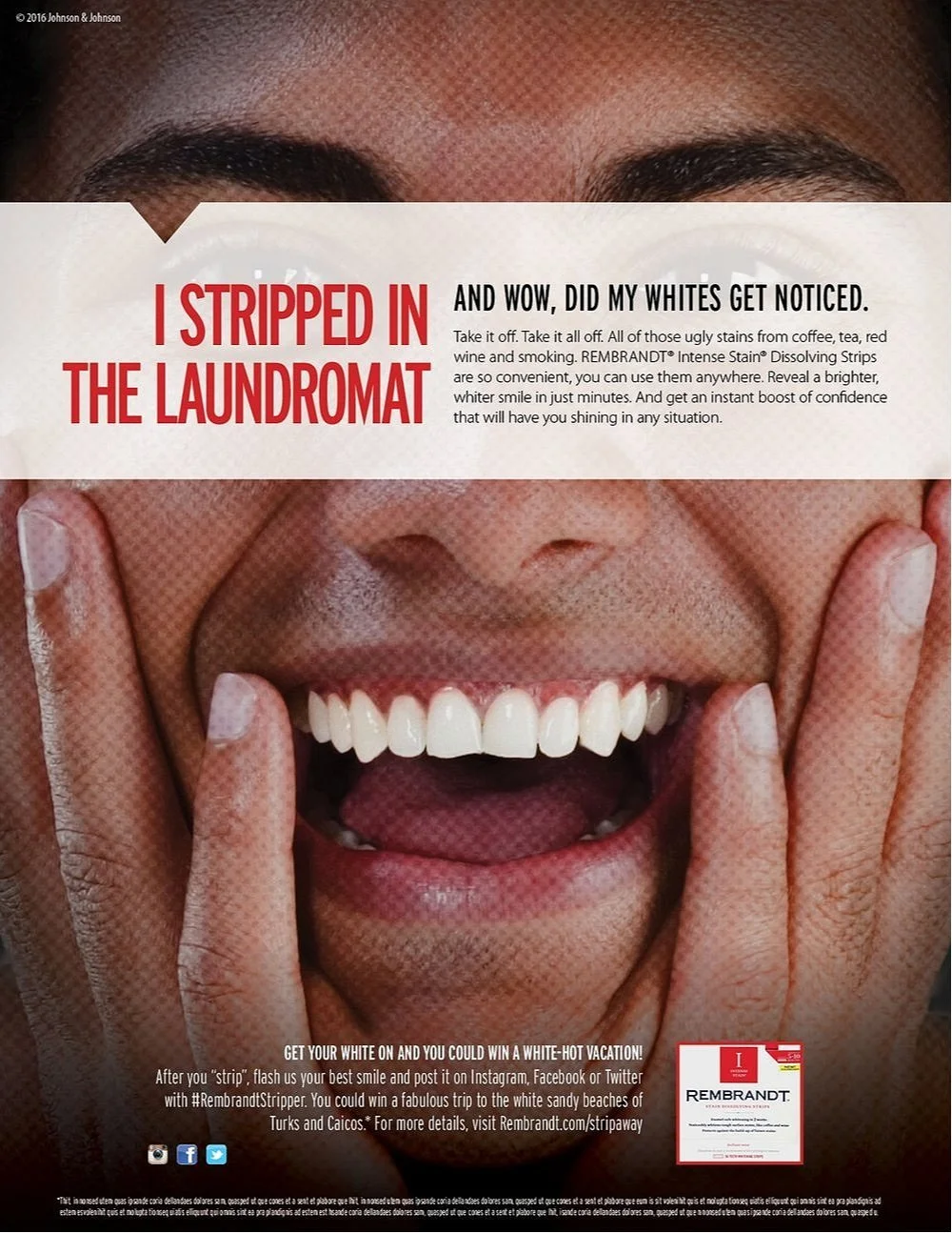 With so many whitening strips on the market, we highlighted Rembrandt’s key difference — they were dissolving, so you could use them anywhere, anytime. The target audience was men and women 25-35 which gave us the opportunity to have some fun with this attention-grabbing campaign.